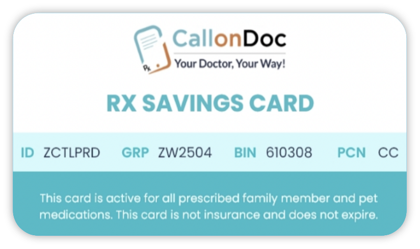 Don't forget to use our free Rx savings card which can help save up to 87% off prescriptions at your pharmacy!